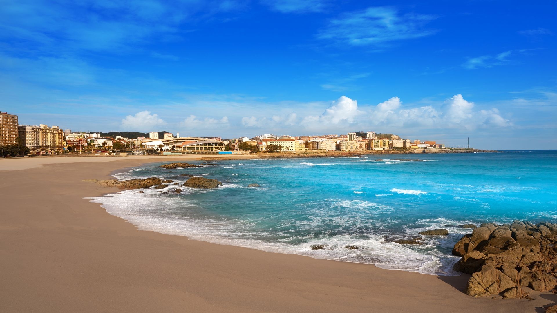 Along the coast, A Coruña reflects Galicia’s maritime character. The Tower of Hercules rises above the Atlantic as a reminder of the region’s long relationship with the sea, while nearby Riazor Beach brings city life directly to the shoreline. Promenades, harbours, and working ports give the area an authentic coastal feel.